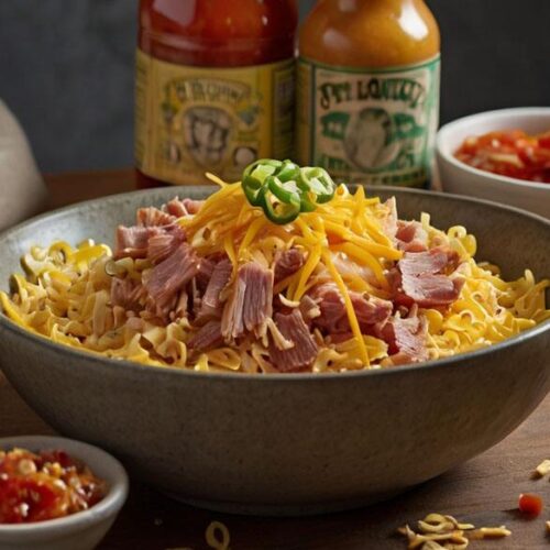 - Incorporate Proteins: Add the drained tuna and chopped beef jerky to the softened noodles.